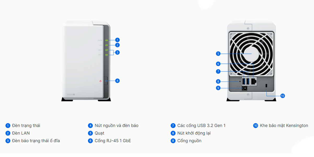 Hình: Tổng quan Thiết bị lưu trữ NAS Synology DS223J